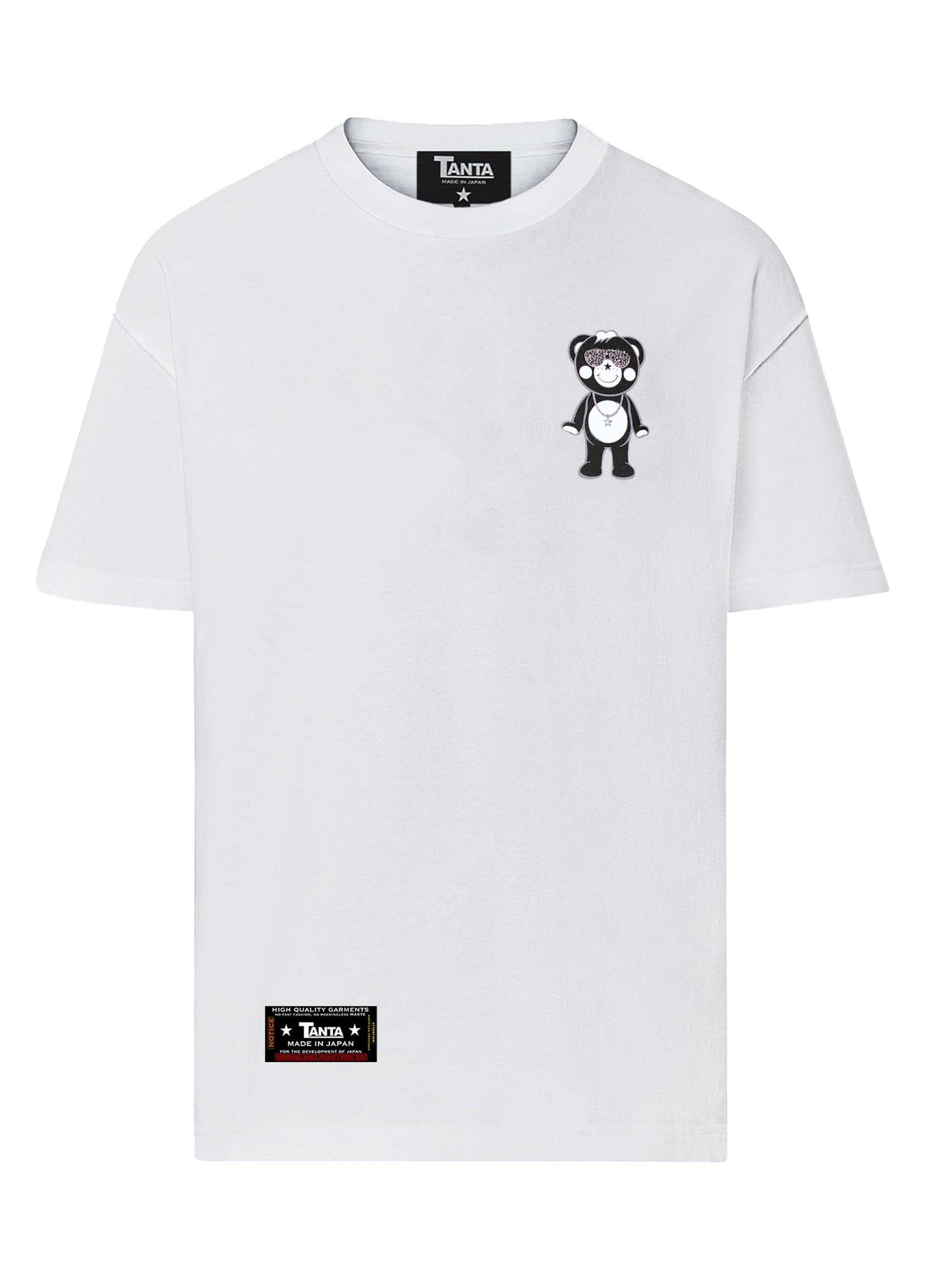 ブランドアイコン「チャッピー」が左胸にプリント。サングラスには本物スワロフスキーのクリスタルを使用。バックにはタンタのロゴがプリントされています。